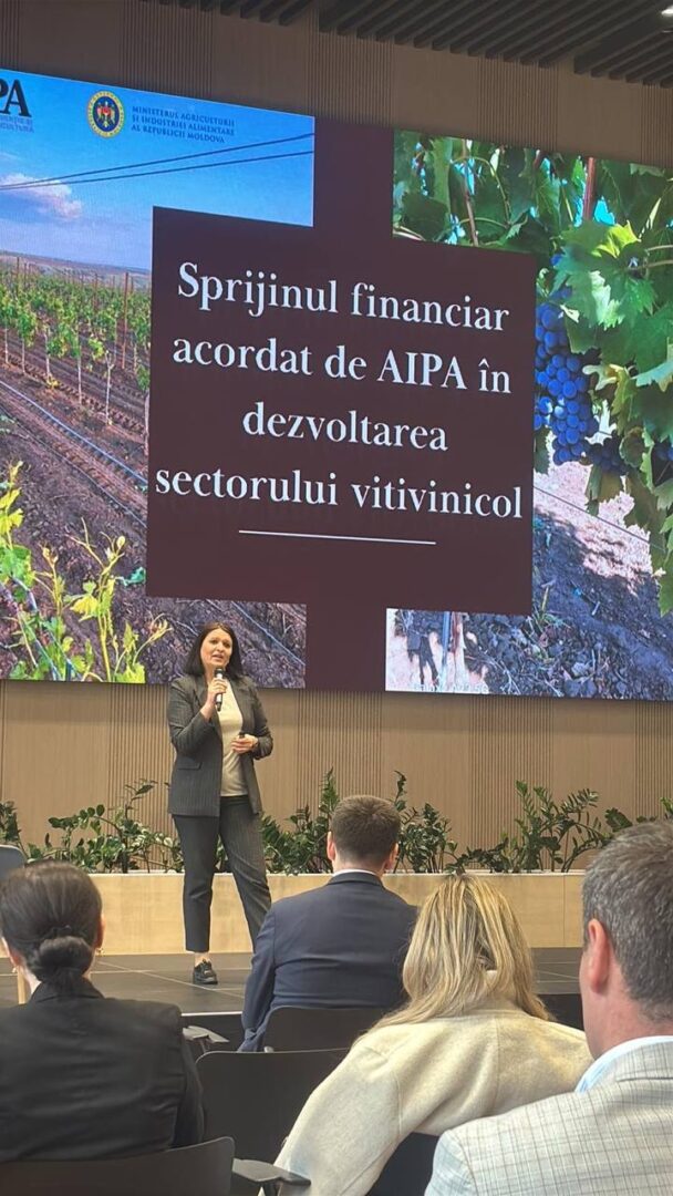 În cadrul evenimentului, directoarea adjunctă a AIPA, doamna Diana COȘALÎC, a susținut prezentarea cu tema: „Sprijinul financiar acordat de AIPA în dezvoltarea sectorului vitivinicol”.