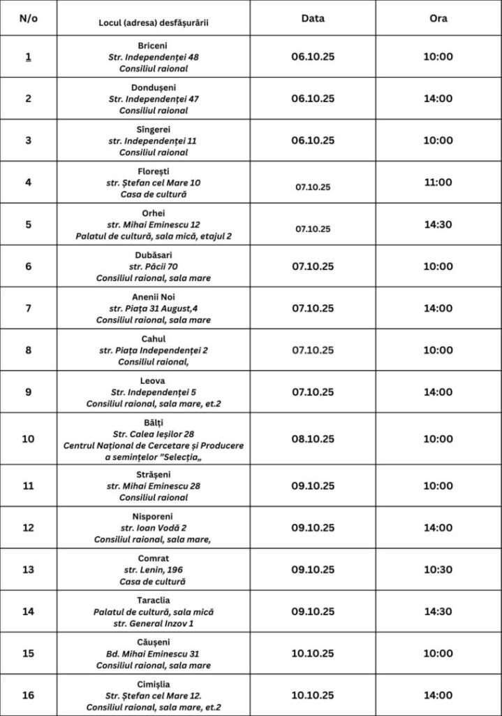 Pentru cei interesați, se atșează graficul și adresele unde va avea loc evenimentul.