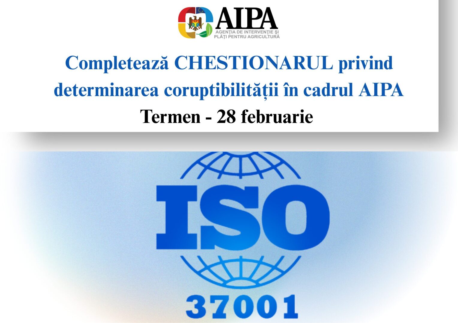 Prevenirea riscurilor aferente corupției este esențială pentru buna organizarea a oricărei instituții. Tocmai din acest prim considerent, AIPA depune eforturi constante în a reduce riscurile de corupție și mituire care ar putea să influențeze mediul de lucru intern, dar și încrederea în serviciile prestate. Respectiv, subdiviziunea responsabilă de exercitarea atribuțiilor de conformare anti-mită a creat un sondaj care vine să evalueze riscurile aferente acestui fenomen.